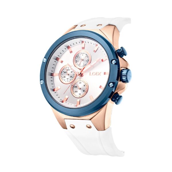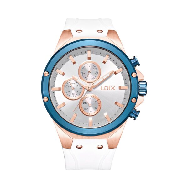 Descripción del color | Blanco con oro rosa. bisel azul. tablero plateado, Negro con dorado. bisel azul. tablero negro, Negro con plateado. bisel negro. tablero negro, Rojo con negro. tablero negro |
