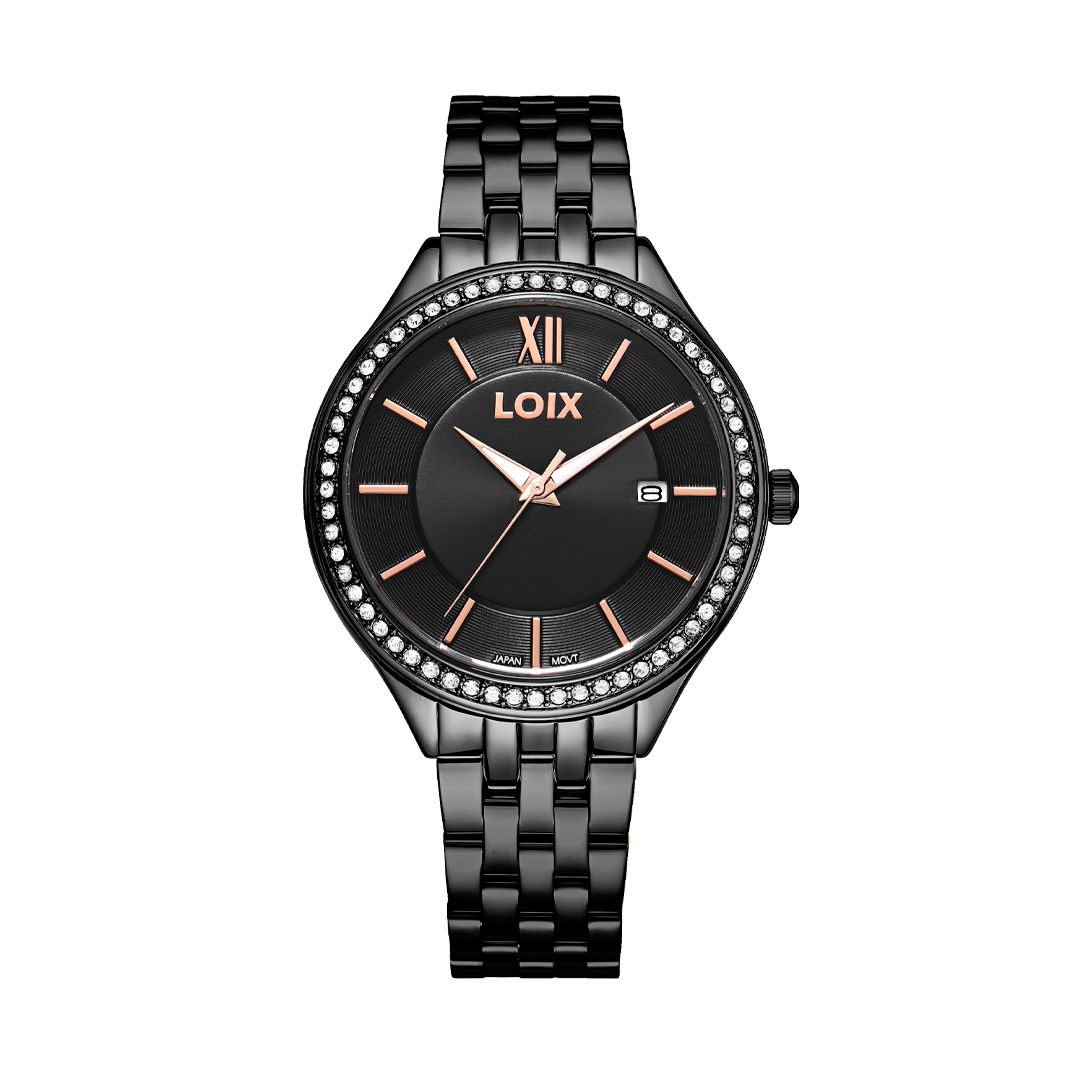 El reloj LOIX es un accesorio sofisticado que redefine el estilo con su elegancia atemporal. Este modelo destaca por su bisel engastado con cristales brillantes, que añaden un toque de lujo sutil pero impactante. La esfera presenta índices en acero pulidos y un prominente número romano a las 12 en punto, creando un contraste refinado sobre la superficie texturizada con patrón concéntrico. Funcional y preciso, incluye una ventana de calendario de fecha a las 3 en punto y está impulsado por una fiable maquinaria japonesa. El brazalete eslabonado a juego, fabricado con un acero de acabado duradero, asegura un ajuste cómodo y duradero, convirtiendo a este reloj en el complemento perfecto para cualquier ocasión, ya sea formal o casual.